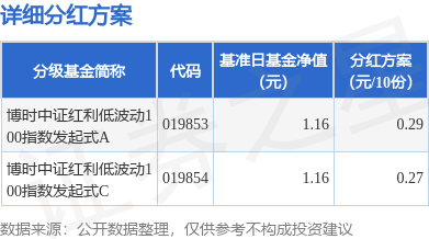 本站消息,1月23日发布《博时中证红利低波动100指数型发起式证券投资基金分红公告》。本次分红为2024年度的第1次分红。公告显示,本次分红的收益分配基准日为12月12日,详细分红方案如下:
